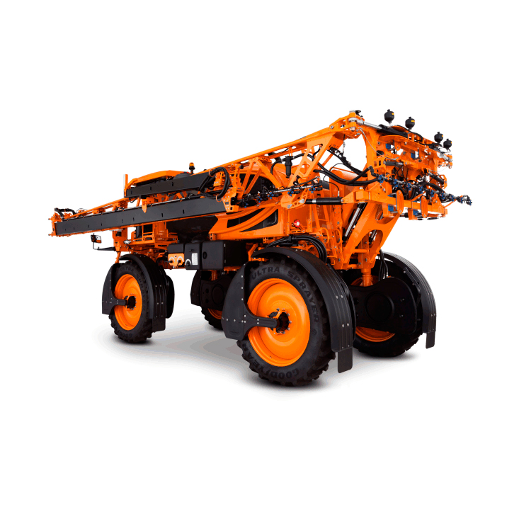 Новая система подруливания UNITRACK позволяет уменьшить радиус разворота опрыскивателя, обеспечивая большую эксплуатационную эффективность. Использование системы подруливания задней оси позволяет на 40% снизить потери при вытаптывании посевов.