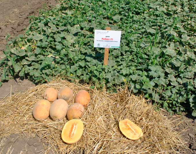 Робуст F1 – новый раннеспелый высокопродуктивный гибрид дыни тип Ананас, от компании Hollar Seeds. Кора золотисто-оранжевого цвета полностью покрыта сеткой. отличающийся высокой транспортабельностью. Вегетационный период 65-70 дней. Мякоть сладкая, насыщенно оранжевого цвета, средней плотности, отличающаяся великолепным ароматом, Brix 15%. Плоды округло - овальные выровненные, средним весом 2,8-3,5 кг. Гибрид проявляет высокую устойчивость к фузариозу, толерантен к мучнистой росе. Уборка - сразу после созревания для лучшей транспортабельности.